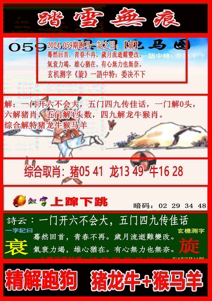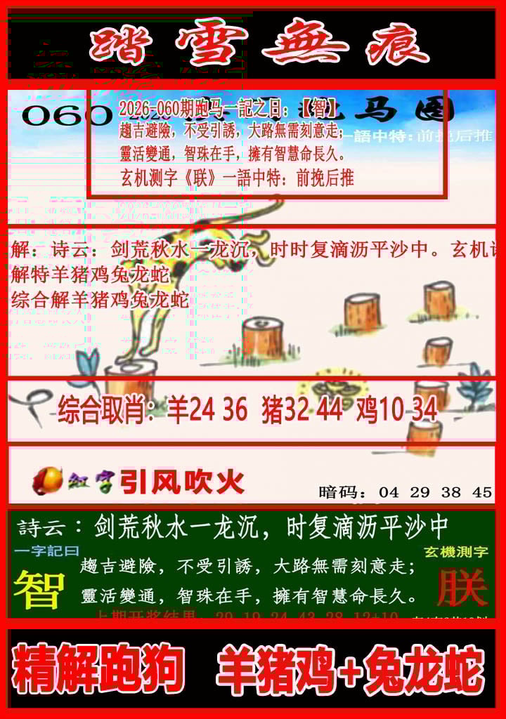 060期 今期鸡猪鼠出特,搔首隋堤落日斜开?00 |